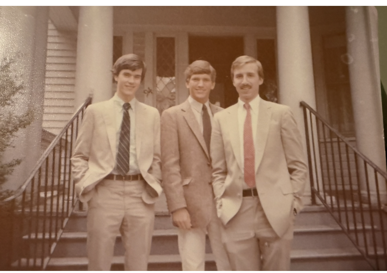 Young historians Manley and Rob, in New Haven, Connecticut, 1981, with Davison M. Douglas (later Dean of the William & Mary Law School); older historians Manley and Rob, parenthesizing their wives Jennifer and Sarah, in Stinson Beach, California, early 2000s.