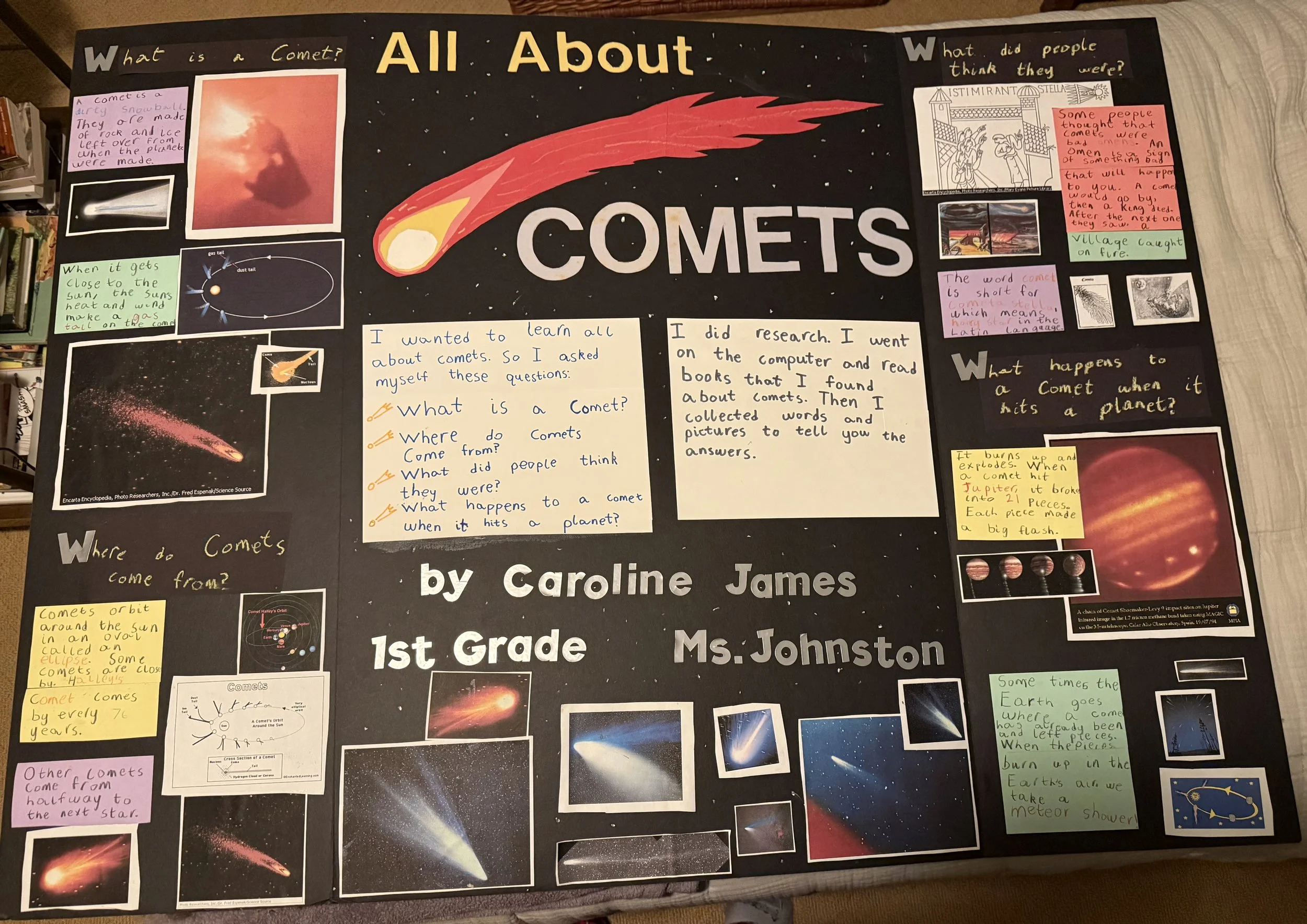 Many years later, I helped my child Caroline with a first-grade science project, “All About Comets.” I learned a lot along with the entire class.